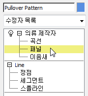 (더하기 기호 아이콘)을 클릭하여 의류 제작자 수정자 계층을 확장한 다음 패널 수준을 클릭해 활성화합니다.