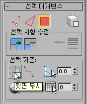 뒷면 무시를 켜 놓으면 뷰포트에서 정면을 향하는 다각형만 선택에 포함됩니다. 모델 반대쪽의 숨겨진 다각형은 선택되지 않습니다.