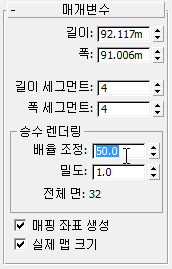 7. 매개변수 롤아웃 승수 렌더링 그룹 배율 조정 필드에서 50을 입력합니다.