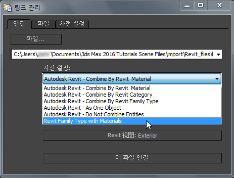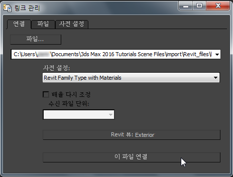 3ds Max에서 beachhouse.rvt 를 연결할 파일로 설정합니다.