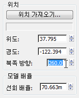 3. 제어 매개변수 롤아웃 위치 그룹 북쪽 방향 필드에 260.0을 입력합니다.