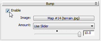 3. 지형 재질 노드를 두 번 클릭하여 해당 매개변수를 표시합니다. 범프 롤아웃까지 아래로 스크롤한 다음 사용을 클릭하여 켭니다.
