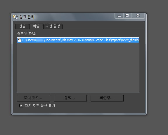 이러한 옵션을 사용하면 장면을 링크하거나 링크된 장면을 다시 로드할 때 3ds Max 재질이 유지됩니다.