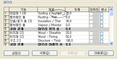 재질 열에서 리스트의 맨 위 항목인 Roofing - Asphalt클릭합니다.