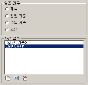 일일 기준 및 수일 기준 탭에서는 하루 이상의 과정에 따라 태양 위치를 애니메이션하는 사전 설정을 선택할 수 있습니다.