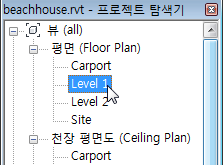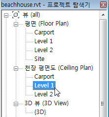 천장 평면도에서 수준 1을 두 번 클릭합니다.