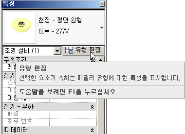 Revit에서 라이트 오브젝트 특성 확인: