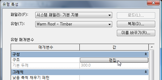 Revit에 유형 특성 대화상자가 열립니다.