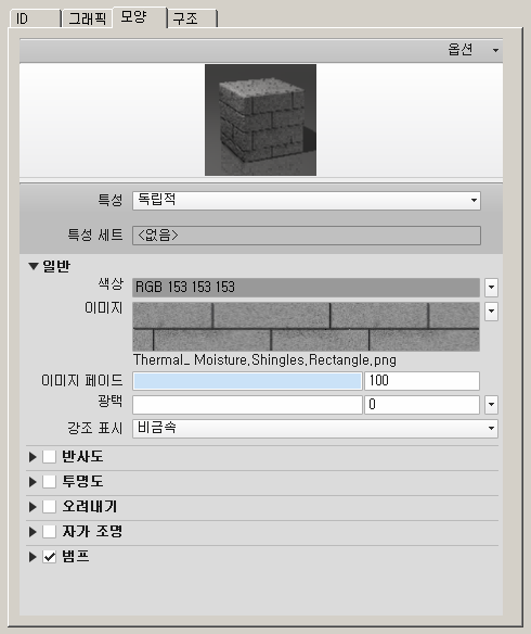 Revit에 재질 대화상자가 열립니다.