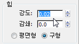 - 역시 힘 그룹에서 강도 값을 0.02로 변경합니다.