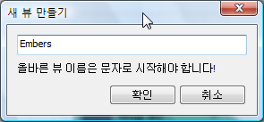 - 새 뷰 만들기 대화상자에서 새 뷰 이름을 불씨로 지정합니다.