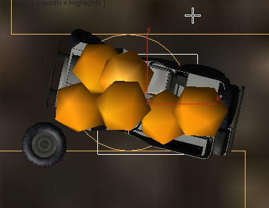 - 투시 뷰포트에서 지프차 근처를 드래그하여 중력 공간 왜곡을 만듭니다.