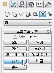 오브젝트 유형 롤아웃에서 중력을 활성화합니다.