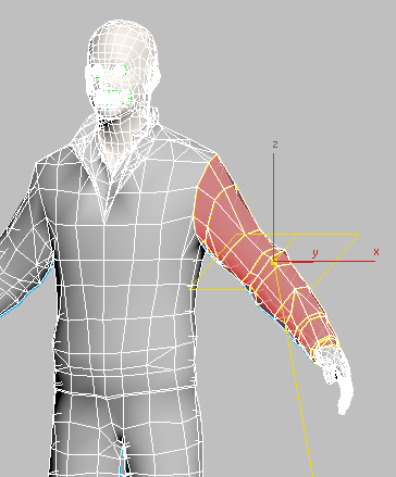 3ds Max에 왼쪽 팔의 다각형이 강조 표시됩니다.