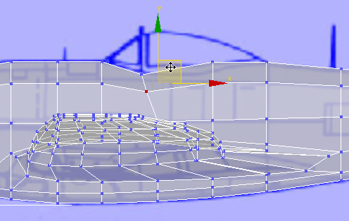 조종석을 모델링하려면 조종석 영역에서 기체의 모양을 지정한 다음 동일한 영역에서 다각형을 돌출시킵니다. 이는 별도의 오브젝트가 되는 조종석 캐노피의 기초입니다.