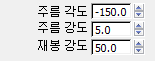 - 이음새 롤아웃에서 주름 각도 값을 이번에는 -150.0으로 변경하고 주름 강도 값은 다시 5.0으로 변경합니다.