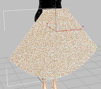 의류 제작자에서 치마 패널이 세분화된 표면으로 바뀝니다. 뷰포트에 모서리 면이 표시되지 않으면 F4 키를 누릅니다.