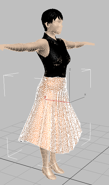 최종적으로는 중력이 치마에 영향을 주도록 할 것이지만, 이 시점에서는 치마가 단순히 모델 바로 옆에서 슬라이딩됩니다.