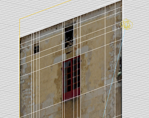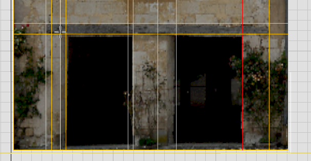 - 맨 위 가장자리 근처의 건물 정면 위로 드래그합니다. 3ds Max에서 이동할 수 있는 수직 가장자리를 구성합니다.