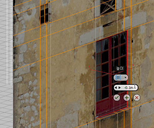 - 높이 컨트롤 옆의 화살표를 드래그하고 창을 약 –0.05m 다시 돌출시킵니다.