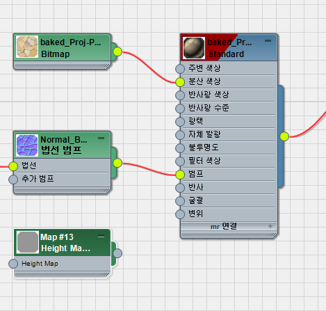 baked_Proj-Plane_mtl / 표준 재질 노드와 새 높이 맵 변위 노드가 모두 제대로 표시되도록 확대합니다.