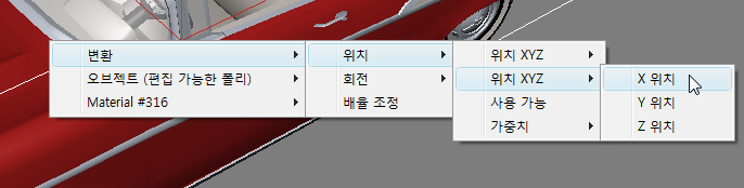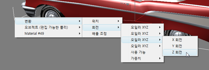 - 자동차 바퀴 중 하나를 클릭하고 변환