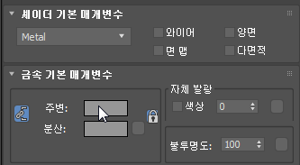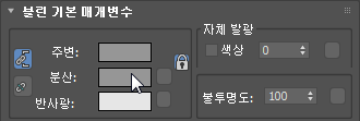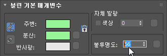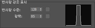 이러한 두 설정에 따라 광택 있는 강조 표시의 밝기 및 크기가 각각 결정됩니다.