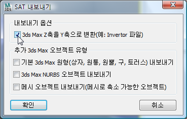 - SAT 내보내기 대화상자에서 3ds Max Z축을 Y축으로 변환을 켠 다음 확인을 클릭합니다.