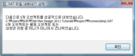 3ds Max에서 오브젝트를 성공적으로 내보냈음을 보고합니다.