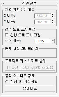 Civil View 탐색기의 아래쪽 패널에 장면 설정 롤아웃이 열립니다.