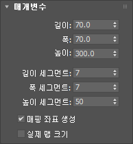 매개변수 롤아웃에서 다음과 같이 상자의 매개변수를 설정합니다.