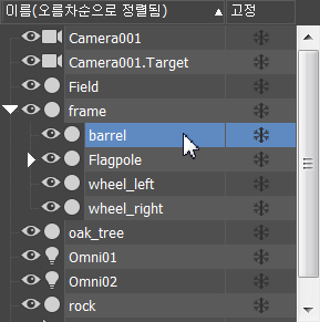 잠시 후 프레임이라는 툴팁이 나타납니다. 이 툴팁은 선택 도구가 프레임 오브젝트 위에 있음을 나타냅니다. 이 장면에서 프레임은 포탄의 상위 오브젝트이므로 프레임이 이동하면 포탄 어셈블리의 나머지 부분도 함께 이동합니다.