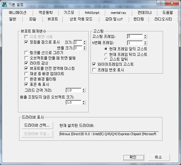 기본 설정을 선택합니다. 뷰포트 탭으로 이동합니다.