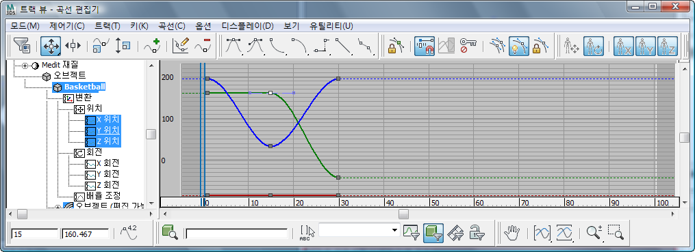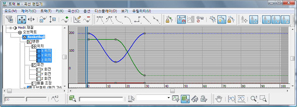곡선 편집기는 애니메이션 관리 및 조정을 위한 범용 도구인 트랙 뷰 기능의 일부분입니다.