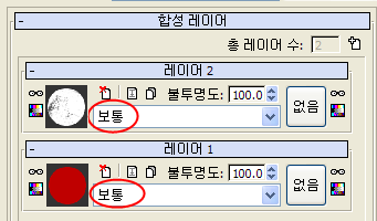 각 레이어의 연산 드롭다운 리스트가 법선으로 설정되어 있으므로 번호가 가장 높은 레이어가 아래에 있는 모든 레이어를 가립니다. 레이어를 혼합하는 작업을 추가해야 합니다.