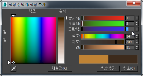- 머리카락의 루트 색상을 R=11, G=5, B=2로 변경한 다음 확인을 클릭합니다.