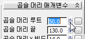 - 곱슬 머리 매개변수 롤아웃을 엽니다. 곱슬 머리 루트를 50.0으로 변경합니다.
