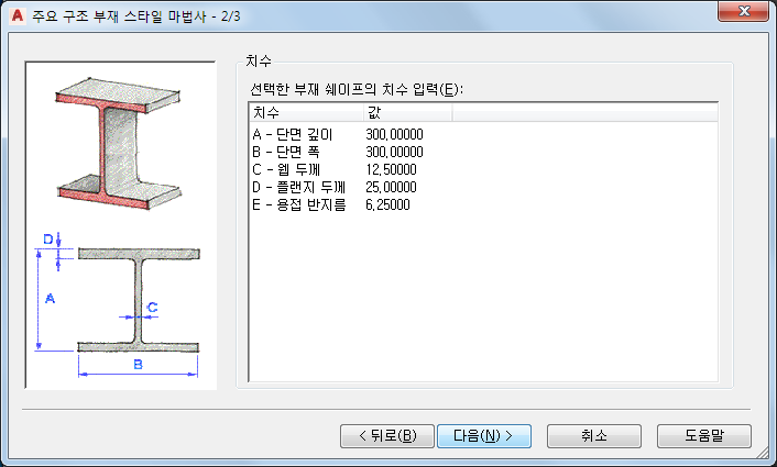 주요 구조 부재 쉐이프 유형 선택