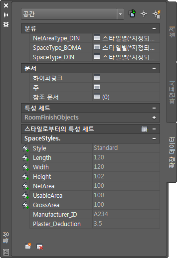 다음 과정에 따라 도면의 객체에 부착된 수동의 스타일 기반 특성 세트 데이터 값을 편집하십시오.