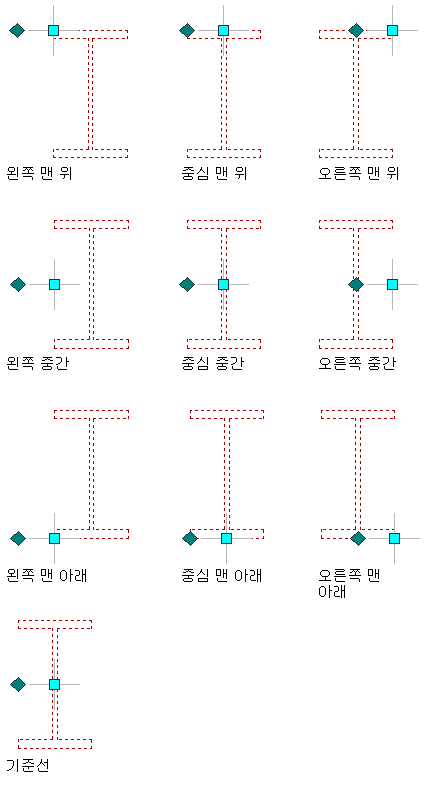 자리맞추기에서 기준선을 선택합니다. 주: 이것은 주요 구조 부재 카탈로그의 스타일만으로 작성된 부재에만 적용됩니다.
