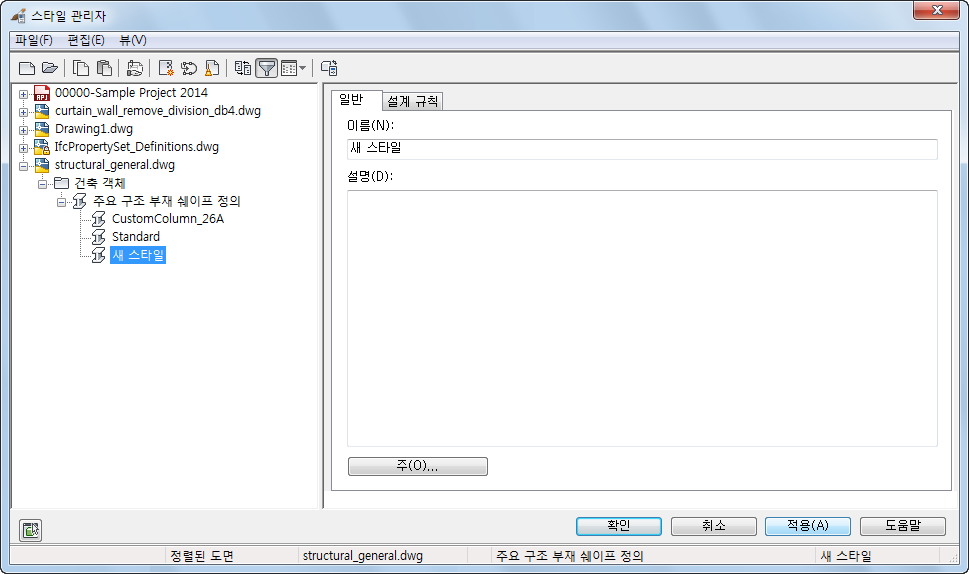 이제 기존 주요 구조 부재 스타일에 새 쉐이프를 추가할 수 있습니다.