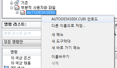 사용자화 탭을 사용하여 부분적 사용자화(CUIx) 파일 언로드