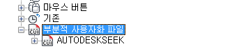 2. 주 CUIx 파일의 트리 뷰에서 부분적 사용자화 파일 노드 옆에 있는 더하기 기호(+)를 클릭하여 확장합니다.
