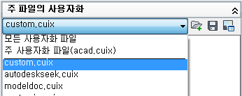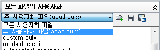 1. 사용자화 탭에 있는 <파일 이름>의 사용자화 창의 드롭다운 리스트에서 주 사용자화 파일(<사용자화 파일 이름>.cuix)을 선택합니다.
