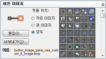 버튼 이미지 창의 적용 위치 아래에서 작은 이미지, 큰 이미지 또는 모두 중 원하는 이미지 지정 옵션을 선택합니다.