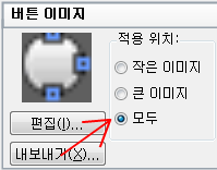 버튼 이미지 창의 적용 위치 아래에서 작은 이미지, 큰 이미지 또는 모두 중 원하는 이미지 지정 옵션을 선택합니다. 그런 다음 이미지 리스트에서 가져온 이미지를 선택합니다.