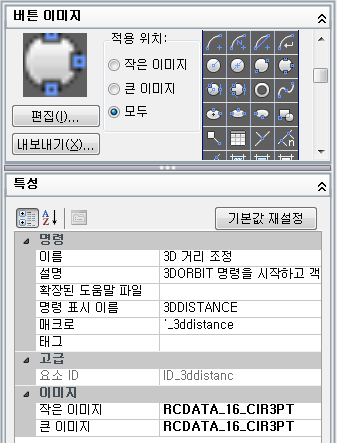 사용자화 탭에 있는 명령 리스트 창에서 이미지를 추가할 명령을 선택합니다.