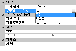 상황별 상태에 리본 탭을 지정할 수 있습니다.