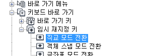 1. 사용자화 탭에 있는 <파일 이름>의 사용자화 창에서 키보드 바로 가기 노드를 선택합니다.
