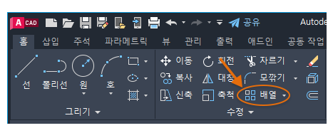 홈 탭 > 수정 패널 > 직사각형 배열을 클릭합니다.